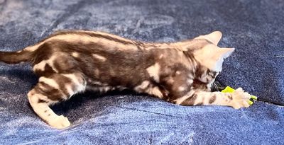Father is Simplyblessed Waterboy, and the mother is Simplyblessed SFI (Safari). DOB 6/21/22. He's super friendly and playful. He's available as a pet only as already neutered.