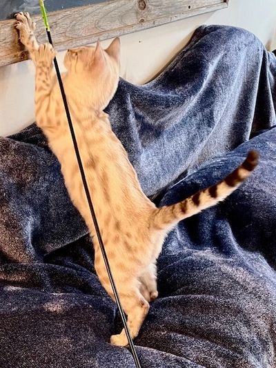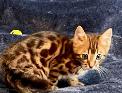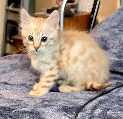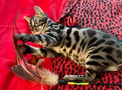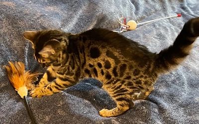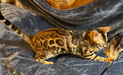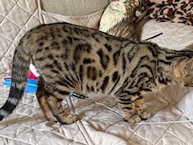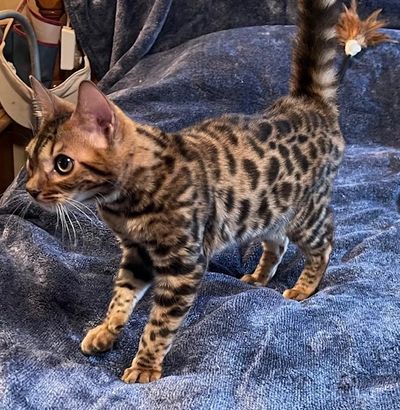 Father is Simplyblessed Waterboy, and the mother is Simplyblessed SFI (Safari). DOB 6/21/22. She's super friendly and playful. She's available as a pet only as already neutered.