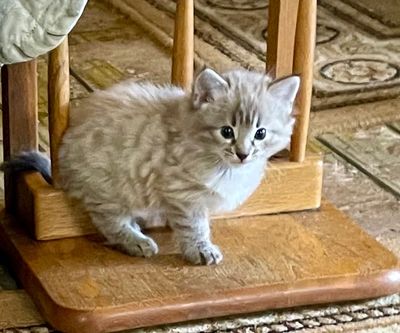 Father is Simplyblessed Waterboy, and the mother is Simplyblessed SFI (Safari). DOB 6/21/22. Her pelt pattern is rich and lovely. She's very friendly and playful. She's available as a pet or as a breeder.