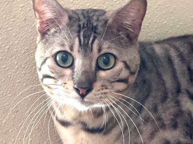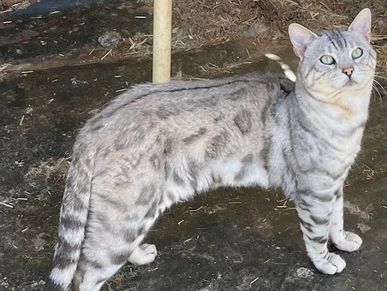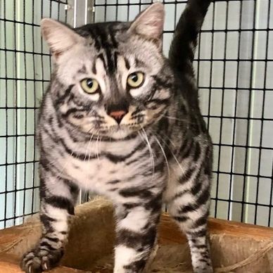 This lovely silver marble male Bengal is one of our favorites because he throws such sweet and winning kittens. He's a well muscled and handsome lad.