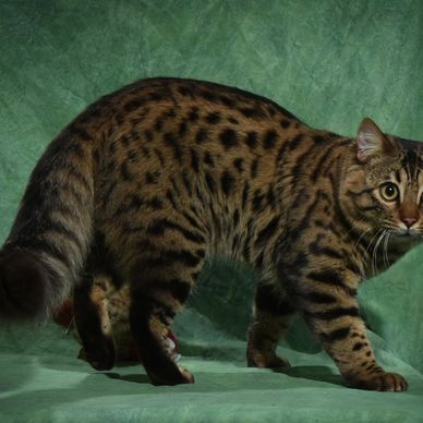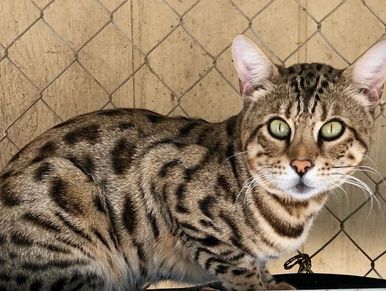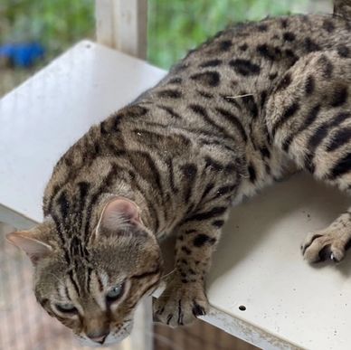 This brown spotted male is a Grand Champion long haired Bengal. We are so happy to have him in our program.