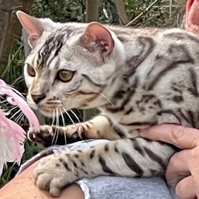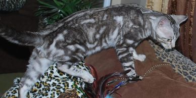 This stunning champion silver marble Bengal sire of ours throws amazing patterned pelts and lovey structured kittens.